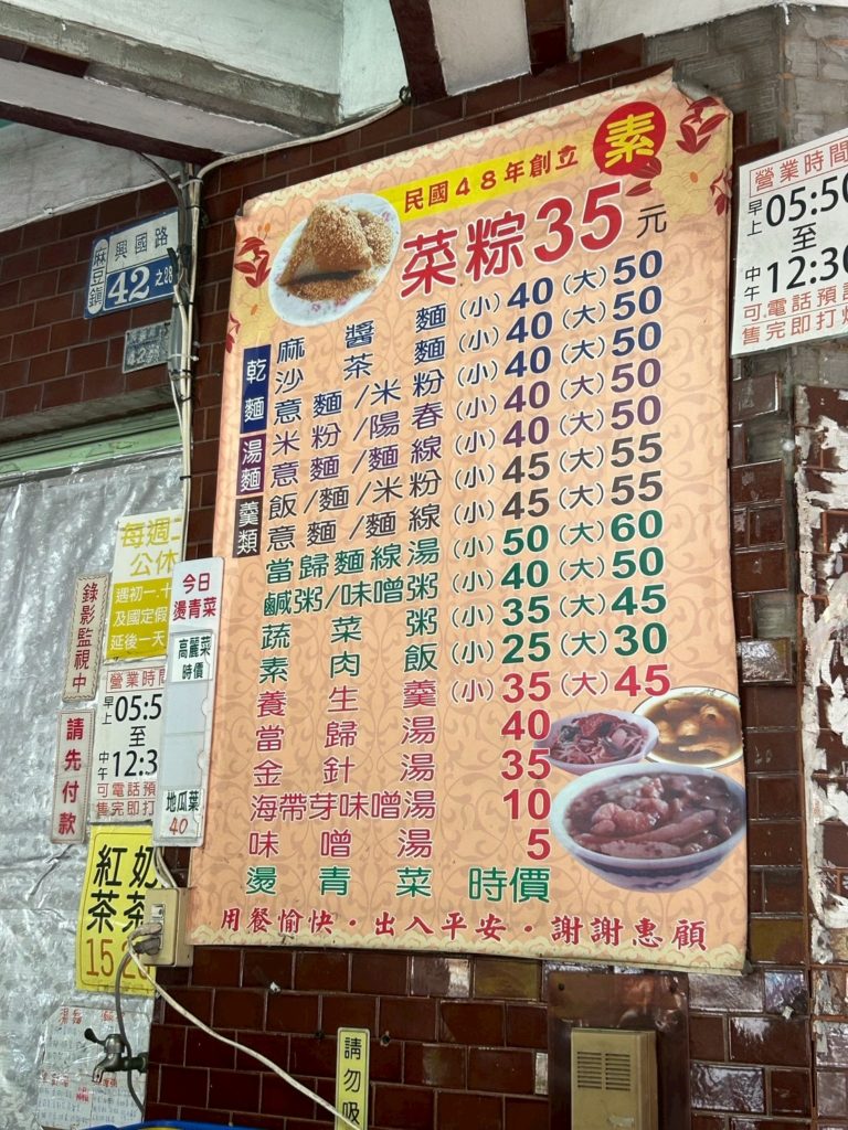 這家生意相當好的粽子店,原本以為只賣粽子,走進店裡看了菜單才發現,竟然還有提供麵食與飯類,選擇比想像中豐富。